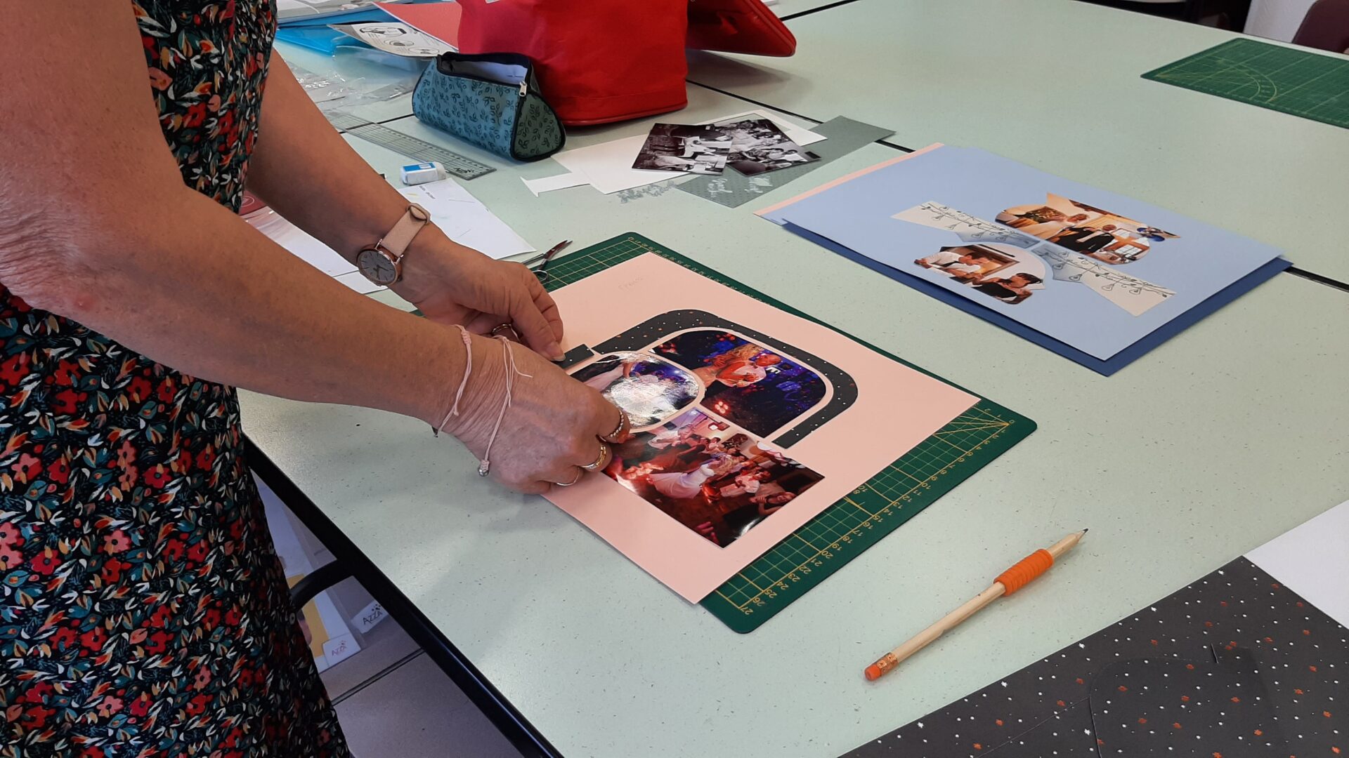 - Par la suite des ateliers « Pas à pas » sont proposés aux adhérents inscrits à l’activité afin de se spécialiser dans une technique particulière : les encres, les titres, les découpages, …